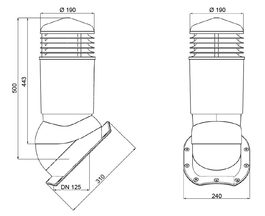 - Изолированный (утепленный) вариант вентвыхода для предотвращения образования конденсата в зимний период.