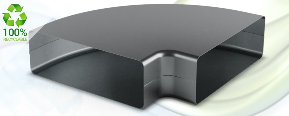 Горизонтальный отвод канала Quadrodec на 90° представляет собой горизонтальный отвод канала, сваренный швом, для соединения 2 прямоугольных каналов Quadrodec.