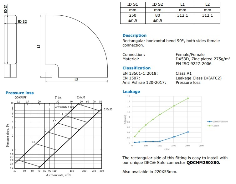 Горизонтальный поворот 90 250х80мм F/F QuadroDEC QDH90FF250x80 в интернет-магазине «ВЕНТФОМ». Заказать с доставкой! Тел.: +7 (925) 201-33-89.