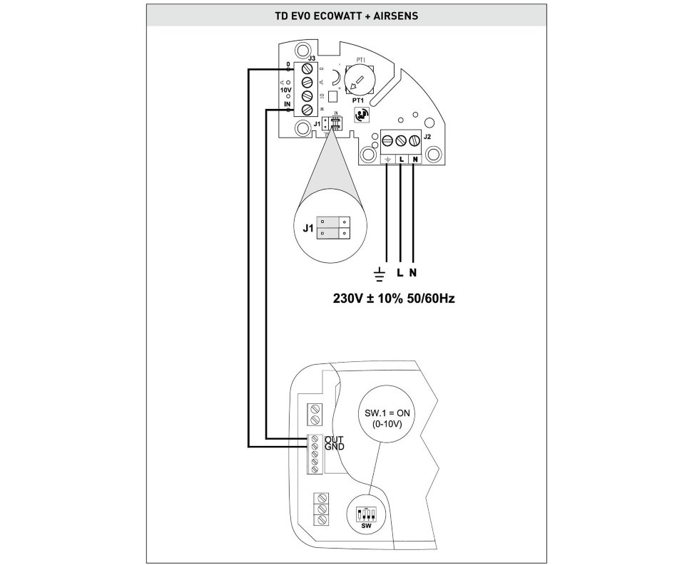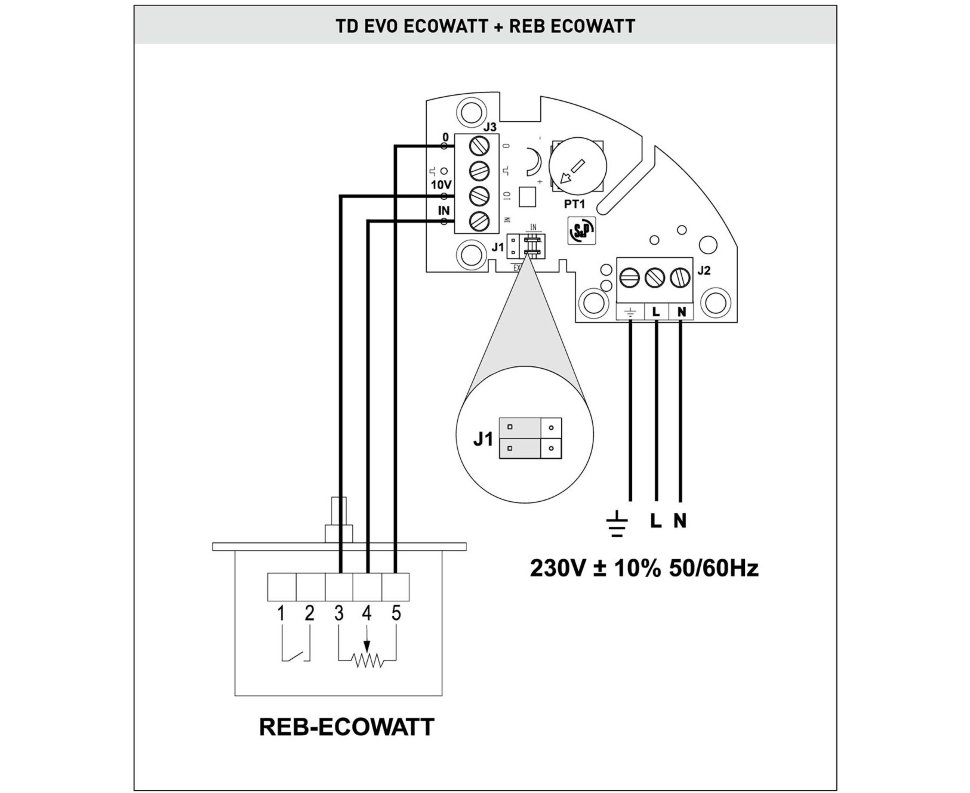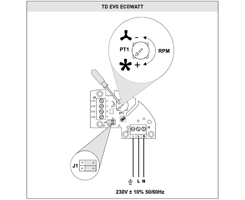 - Класс защиты IP44, класс изоляции B, Параметры электропитания: 1ф - 230 в - 50 Гц Скорость вентиляторов регулируется в диапазоне от 10% до 100% при помощи потенциометра, расположенного в клеммной коробке или при помощи внешнего потенциометра REB-ECOWATT (опция).