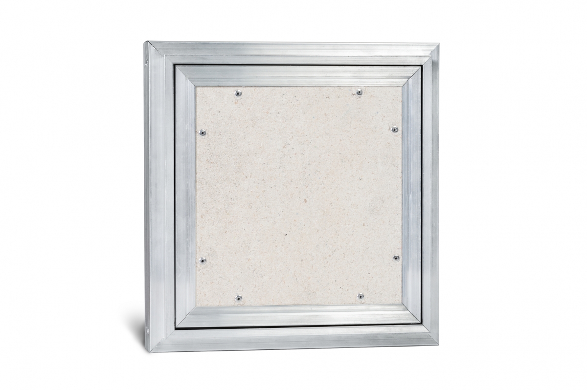 Дверца люка модели «Триумф» по умолчанию заполняется гипсоволоконным листом (ГВЛ) толщиной 10 мм, который идеально подходит для нанесения плиточного клея. По согласованию с заказчиком, заполнение дверцы можно выполнить влагостойким гипсокартоном (ГКЛВ) толщиной 9,5 мм.