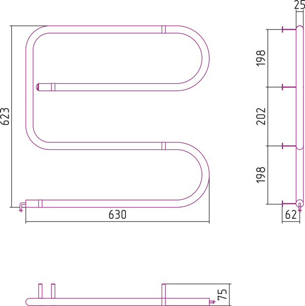 Полотенцесушитель электрический Стилье ЭПС GS-образный 600x650 (64 Вт)