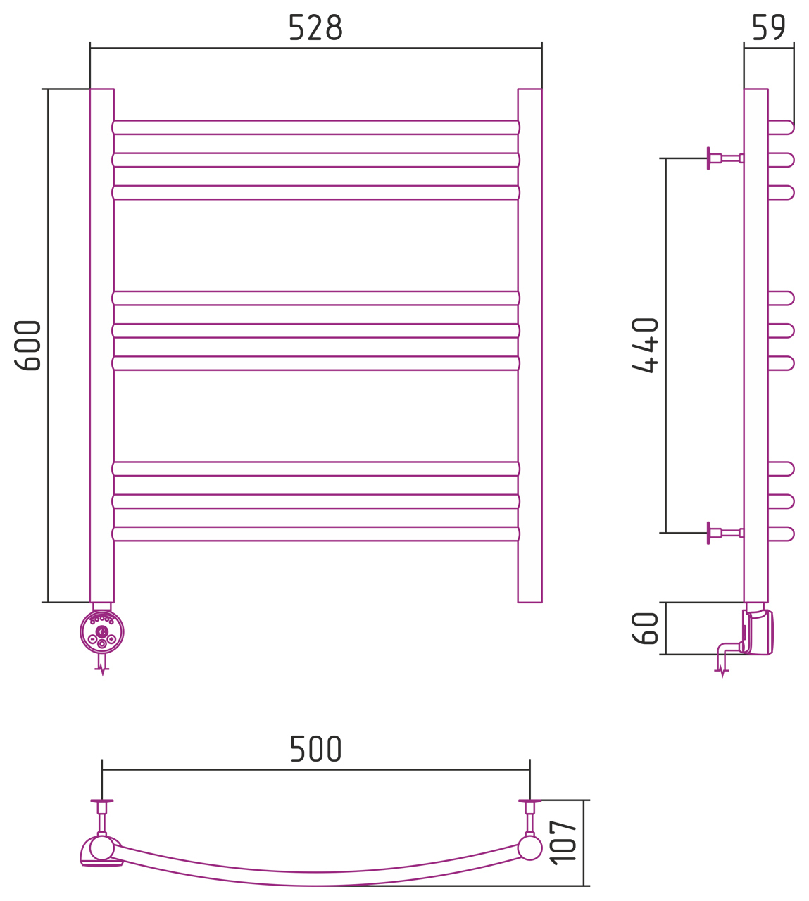 Полотенцесушитель электрический Стилье Формат №10 600x500