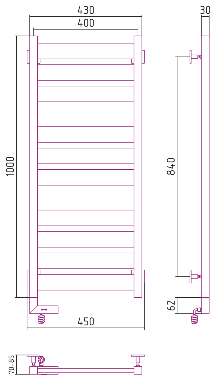 Внешние габариты (высота х ширина х глубина)(мм) : 1062x450x70-85