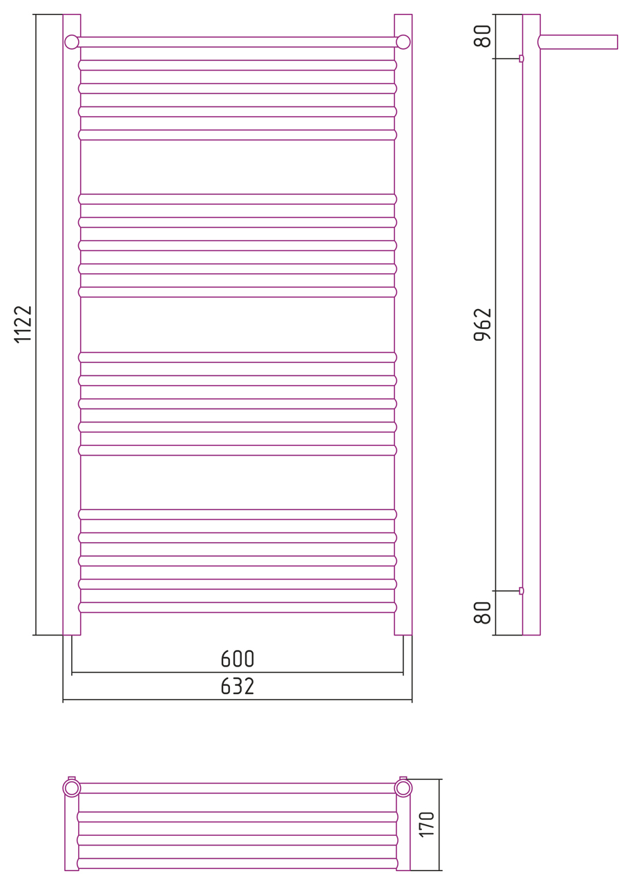 Тип:Богема с 1 полкой, Полотенцесушитель