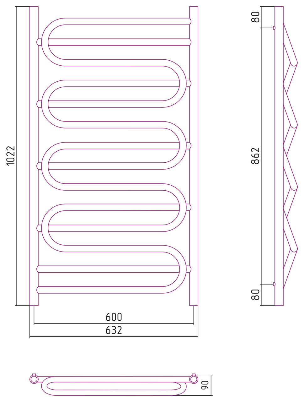 Размер полотенцесушителя:1200x600