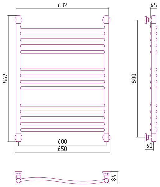 Полотенцесушитель водяной Сунержа Флюид+ 800x600