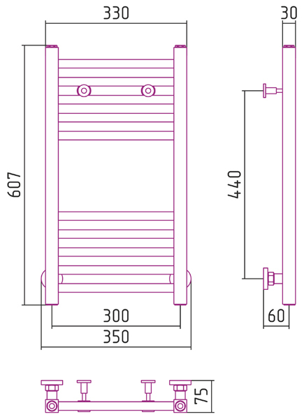 Полотенцесушитель водяной Сунержа Модус 600x300