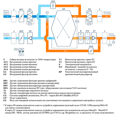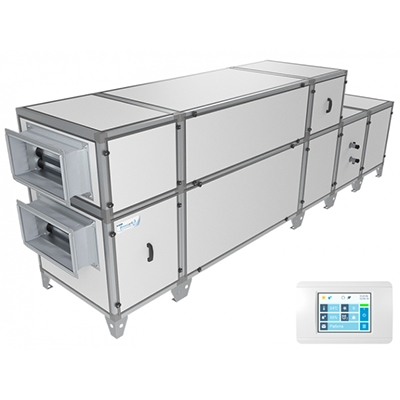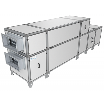 - Приточно-вытяжная установка напольного типа с противоточным пластинчатым рекуператором, системой защиты от замерзания.