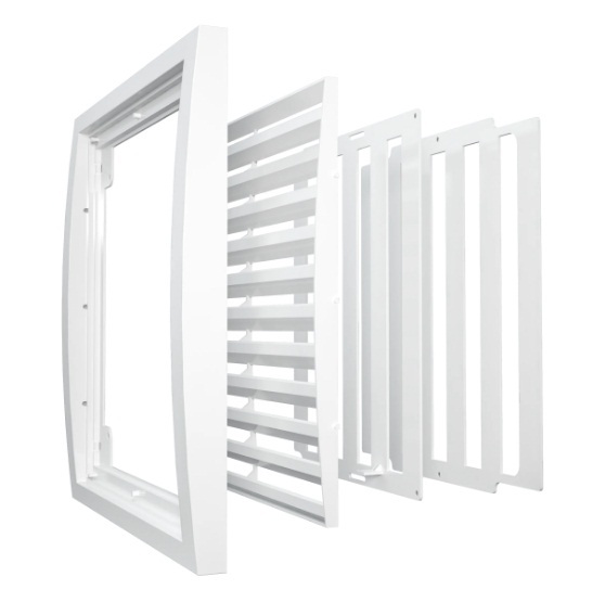 Решетка вентиляционная с наклонными фиксированными жалюзи, или динамичными жалюзи для модификации «РРП», предназначена для естественной вентиляции.