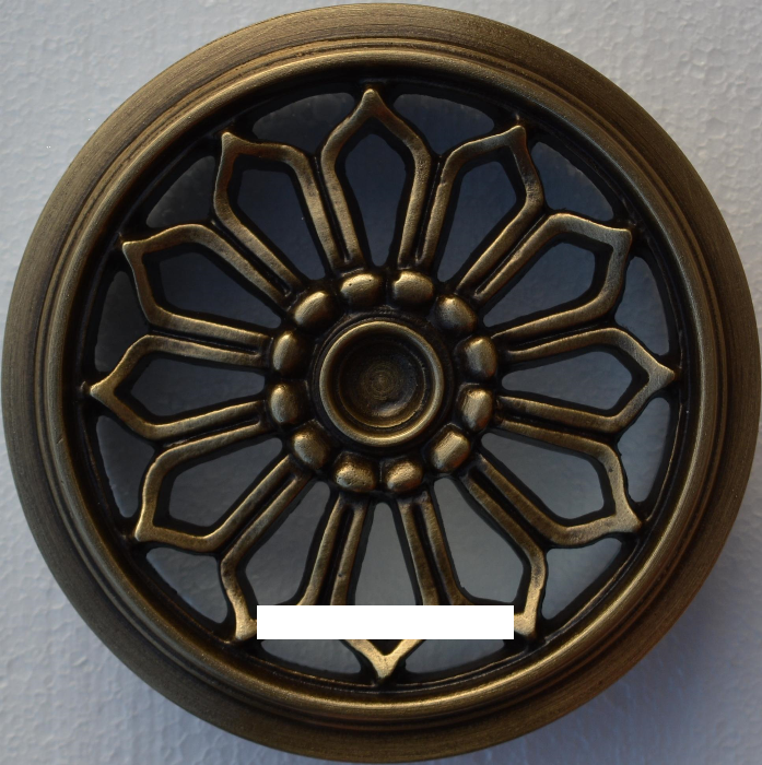 - К круглой вентиляционной решётке Розетка D130 с тыльной стороны подсоединён круглый фланец для установки в отверстие диаметром 130 мм или для подсоединения к этому фланцу воздуховода диаметром 130 мм.