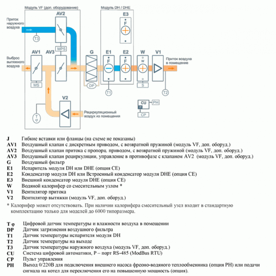 - Возможные опции PH нагрев воды в бассейне CF дополнительный охладитель и управление ККБ CH переключение тепло-холод CE выносной конденсатор и переключение тепло-холод DS диспетчеризация.